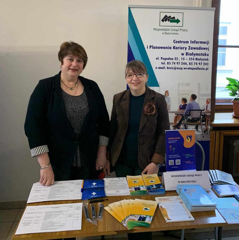 Stoisko informacyjne Centrum Informacji i Planowania Kariery Zawodowej w Białymstoku odwiedziły głównie osoby poszukujące pracy, ofert staży i praktyk, a także zainteresowane warsztatami aktywizującymi.